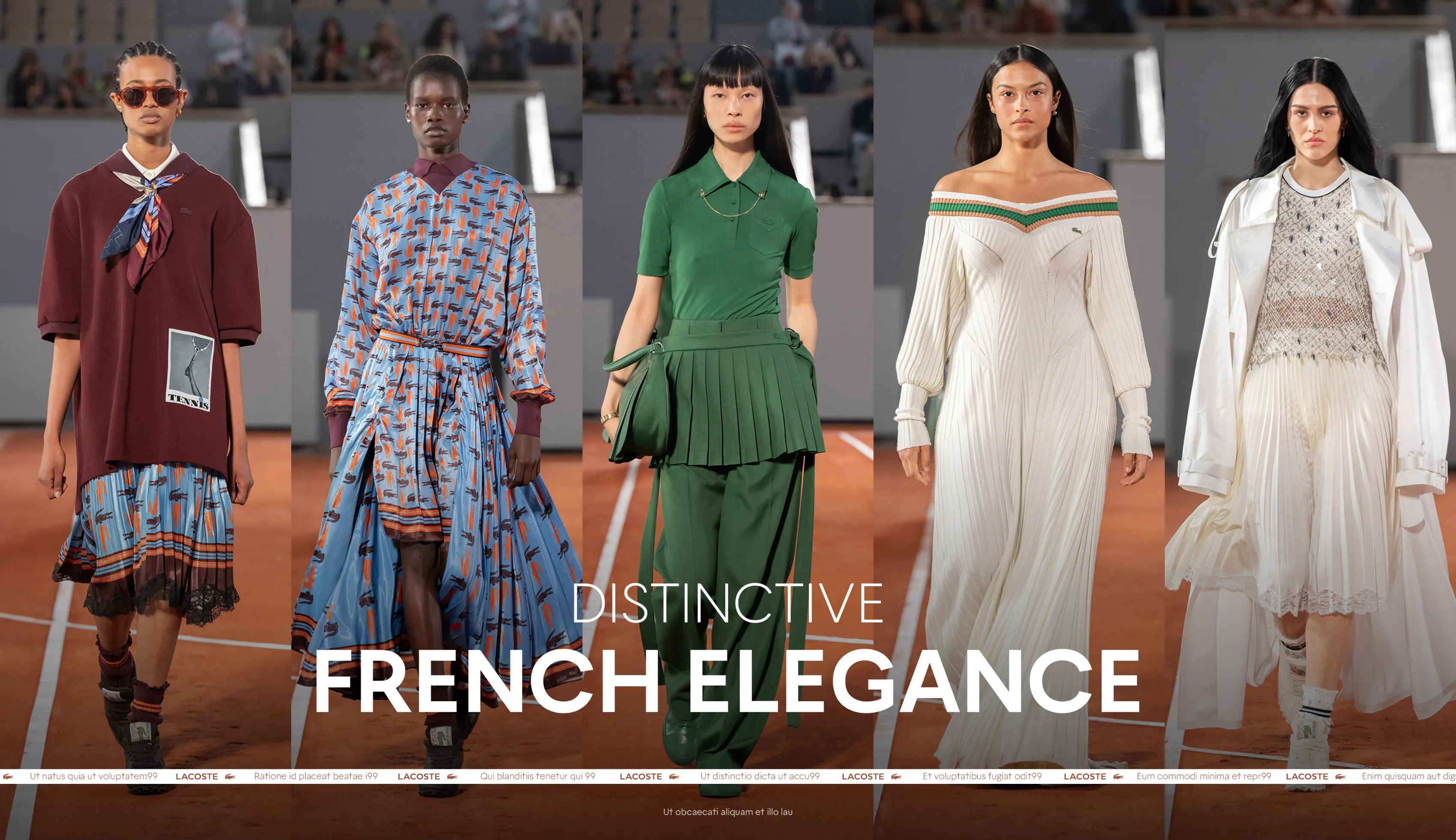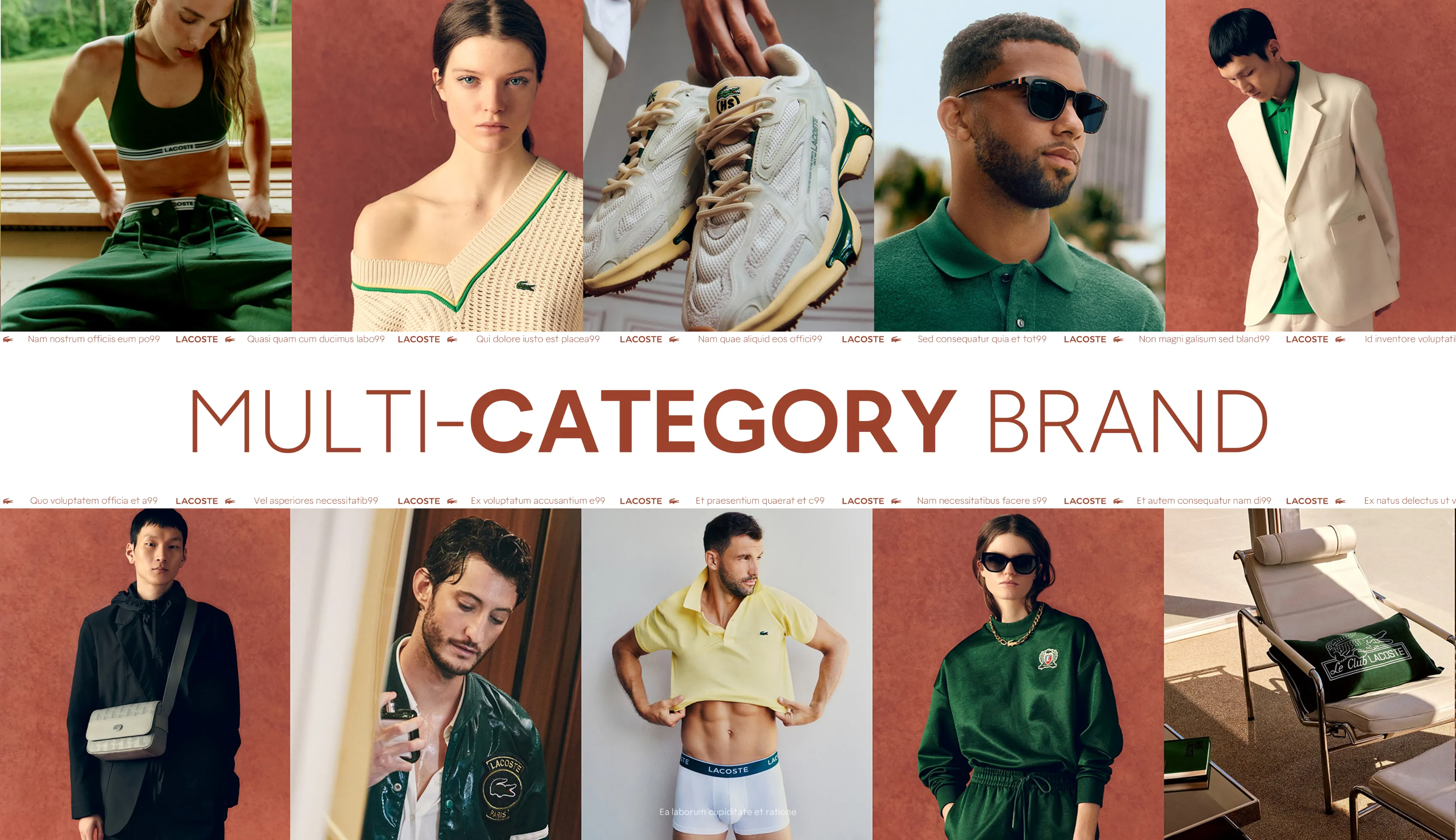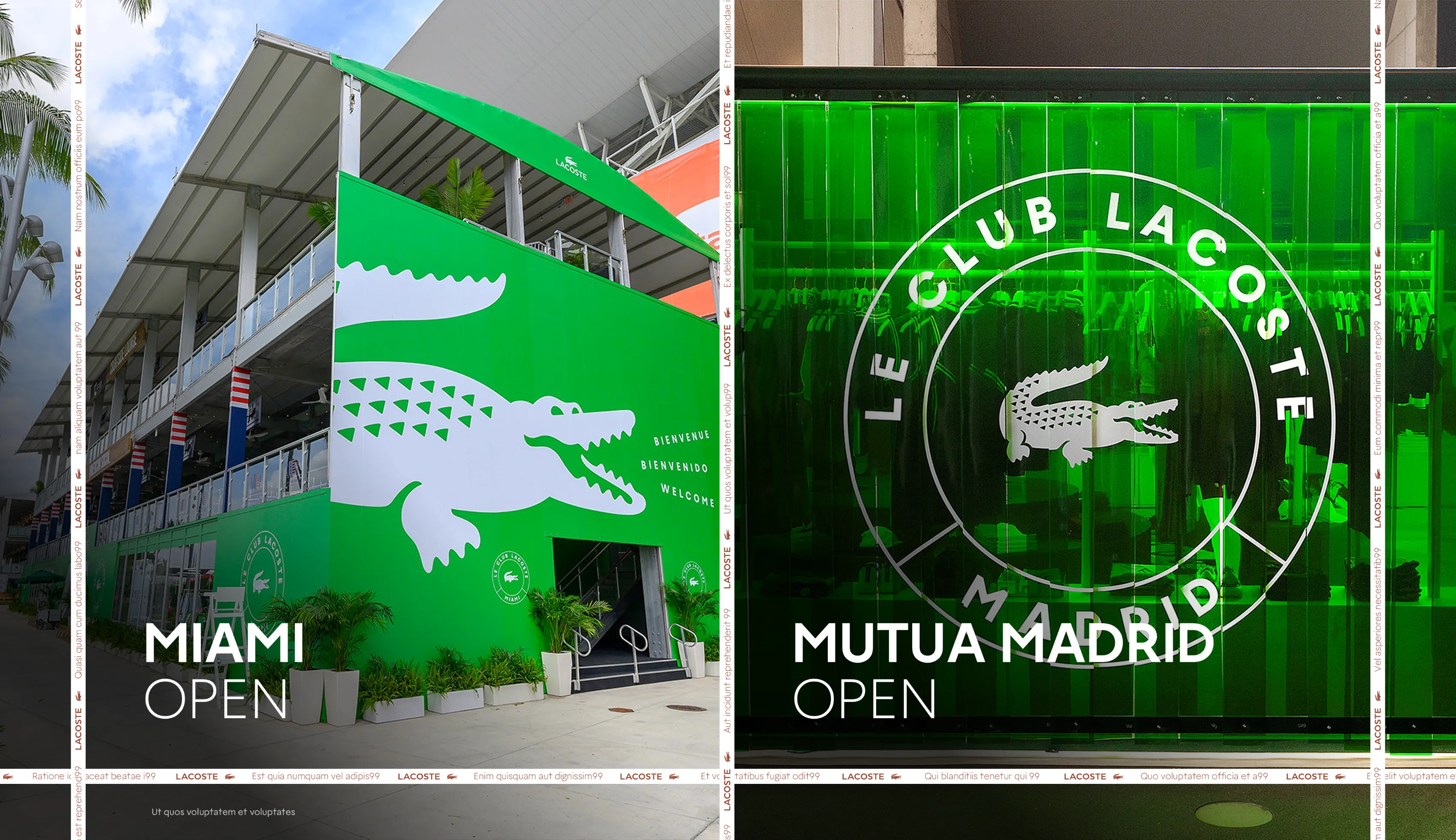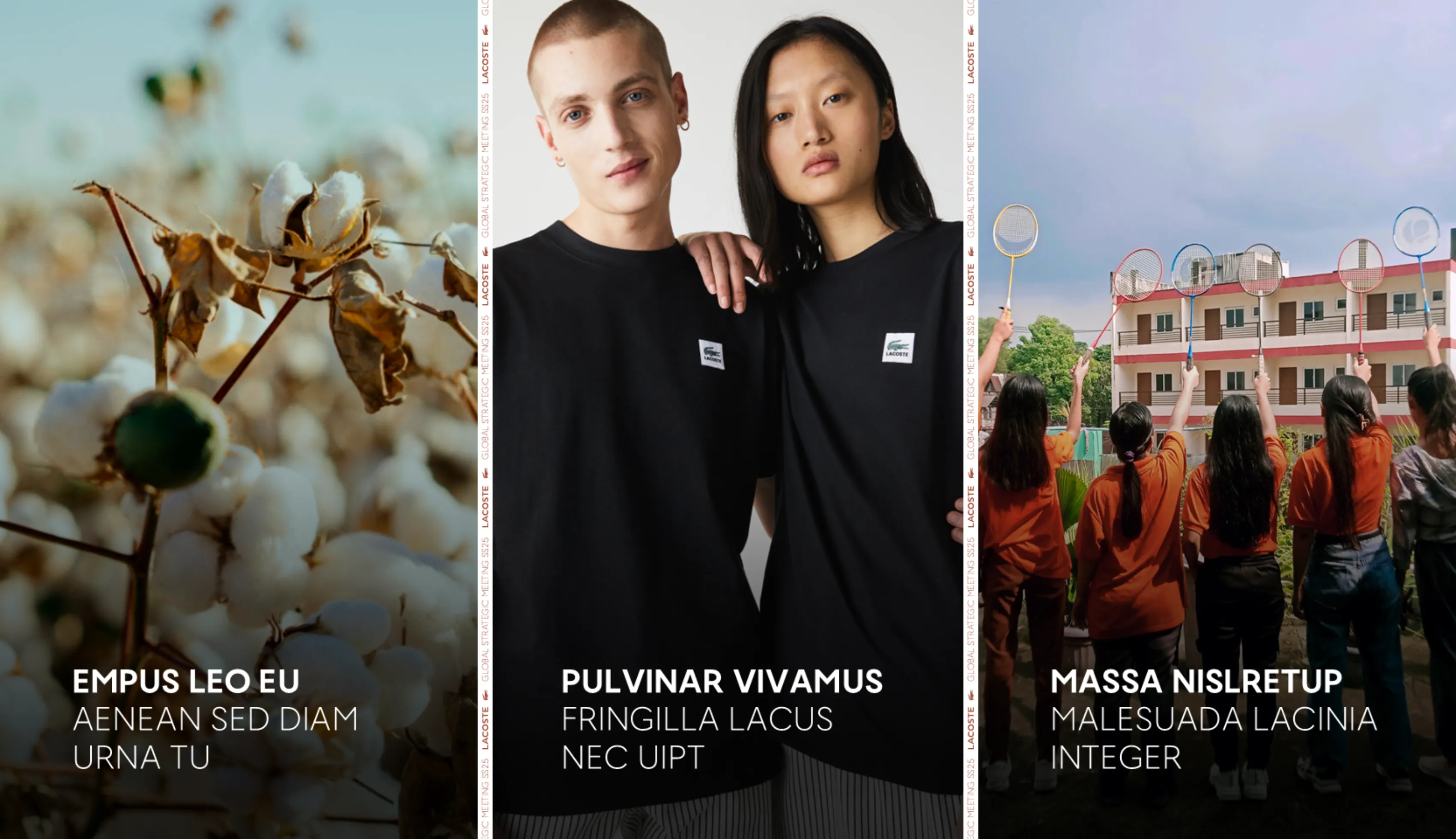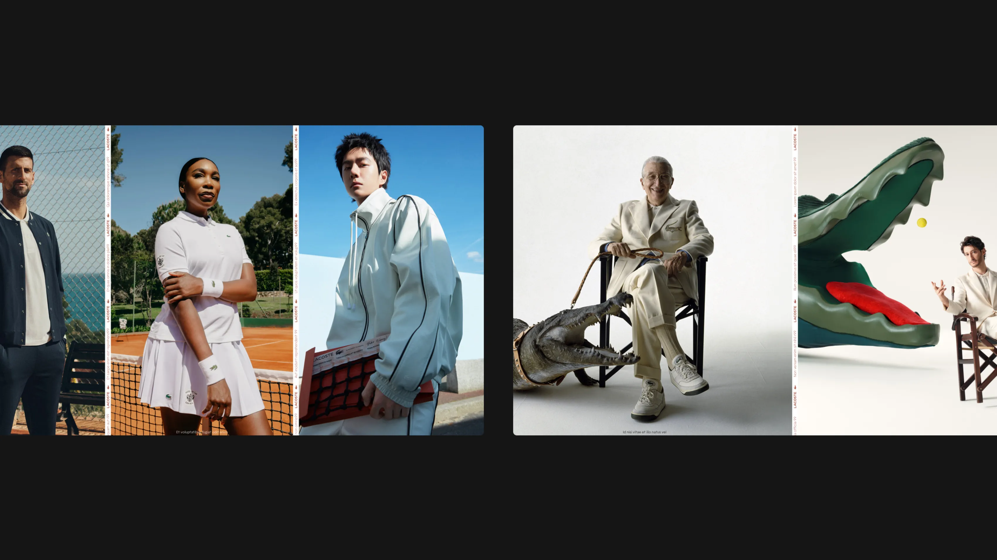 Le polo et le tennis, piliers historiques de la marque, ont guidé la direction créative du support. Chaque slide s’inscrit dans cet héritage, en valorisant les racines sportives et l’élégance intemporelle qui définissent l’univers Lacoste.