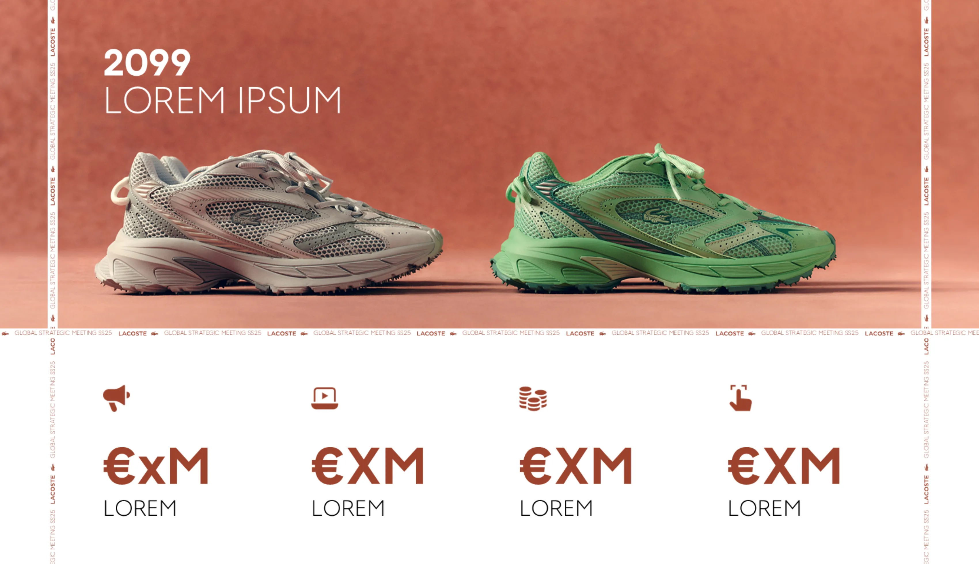 Pour accompagner le GSM de Lacoste, nous avons une nouvelle fois conçu un support de présentation visuel et impactant, pensé pour dévoiler les nouveautés, le plan marketing et la vision stratégique de l’année à venir, tout en respectant les codes iconiques de la marque : le polo, le tennis et l’élégance sportive.